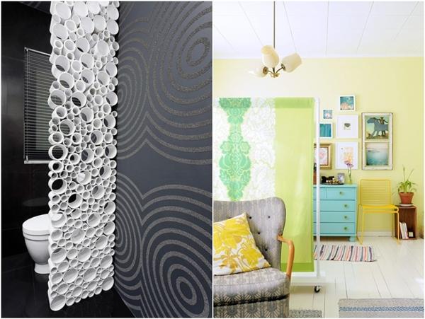 Partisi Ruangan. Banyak material yang digunakan sebagai partisi ruangan. Salah satunya dengan menggunakan pipa pvc, dengan menggunakan beberapa ukuran diameter pipa anda dapat menyusun dan menempelkannya sebagai partisi ruangan.